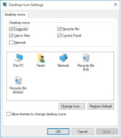 Klik Kanan pada Desktop Windows 10 Anda > Pilih Personalize > Themes > Desktop Icon Settings